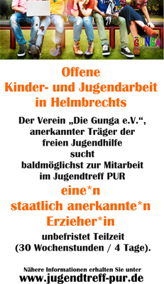 Wir suchen Verstärkung in der Offenen Kinder- und Jugendarbeit in Helmbrechts. Wenn für dich Mitbestimmung, Freiwilligkeit, Beziehungsarbeit keine Fremdwörter sind und du bereit bist, dich auf Neues einzulassen, dann komm in unser Team. Hier hast du die Möglichkeit, etwas zu bewegen. Gestalterischer Freiraum inklusive! Wir freuen uns über jede Bewerbung. Zur ausführlichen Stellenausschreibung.